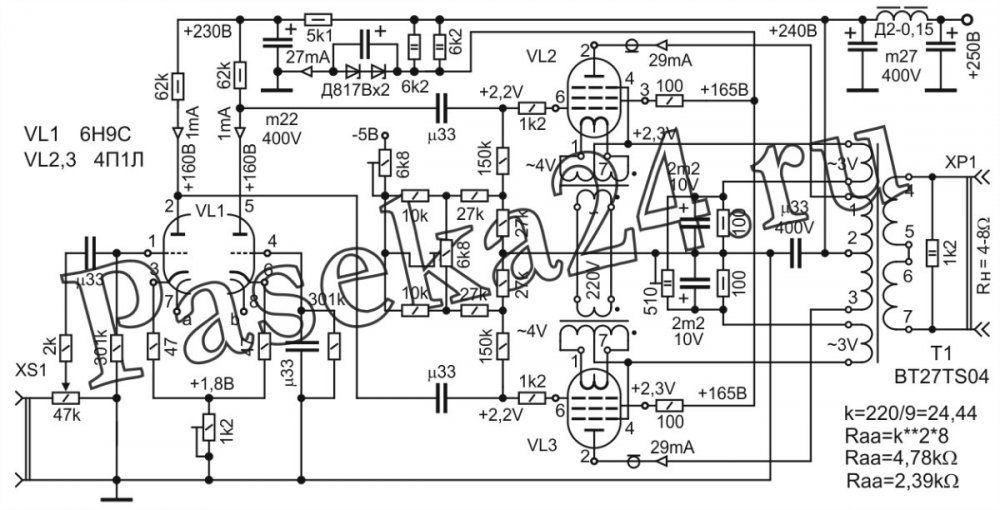 Я не держусь за УЛ клыками и когтями. Просто любопытствую, понять явление более глубоко хочу. Итак, по теме. Проект я вижу так (поправте, если ошибаюсь). Традиционный драйвер с традиционным питанием, после которого традиционный выходной каскад. Но... После межкаскадного конденсатора - дополнительная ветка, в которой: - развязывающее сопротивление (как, впрочем и у выше упомянутого выходного каскада) кило0м на 100, - дополнительное усиление на 6Н8С с регулятором/переключателем громкости, - выход СЕ на 6П6С в тетроде без ООС и покемонщины. В питании, после развязки, - только не-электролиты. Сколько? Там, всё-таки, 6П6С... Какие? МБГО? МБГЧ? -