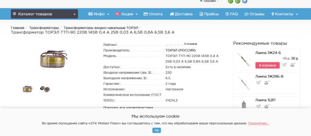 Продам анодно -накальный трансформатор ТПП-90 производства "Торэл". Вторичные напряжение,токи можно посмотреть на скриншоте или у оф.представителя .https://mobylplus.ru/toroidalnyj-transformator-torel-ttp-90-220v-145v-0-4-a-25v-0-03-6-5v-0-8a-6-5v-3-6-a/. Цена-1000руб. Трансформатор залит в кожухе(бесшумный,полностью рабочий). Отправка Транспортными компаниями,почтой за счет покупателя. Тема закрыта.Продано.
