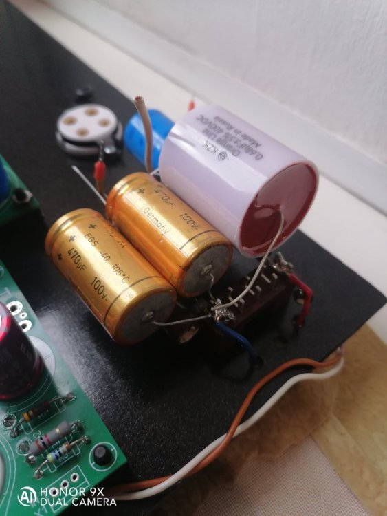 Хорошо.Мне тоже интересен результат. Пробовал запускать один канал для проверки монтажа.Запустился сразу без косяков,но при нескольких пробных включениях пошло не по плану(для этого делал сразу дублирующие платы ВК и БП). В предыдущем проекте гибридного усилителя "Заратустра"также ставил для себя цель.1) Попробовать сделать,собрать все на современных качественных печатных платах.2) При монтаже уйти от множества проводов внутри корпуса-так как было использовано 4силовых трансформатора,более 12вторичных обмоток,сигнальные цепи,индикация.защита. Ну и получить Звук! Тогда поставленную для себя цель я выполнил. С этим конечно чуть проще. -
